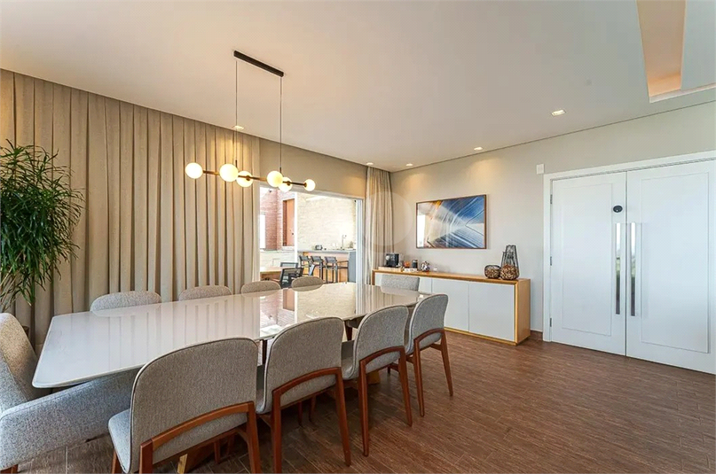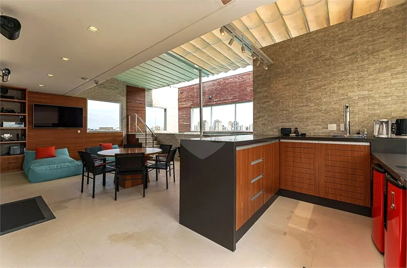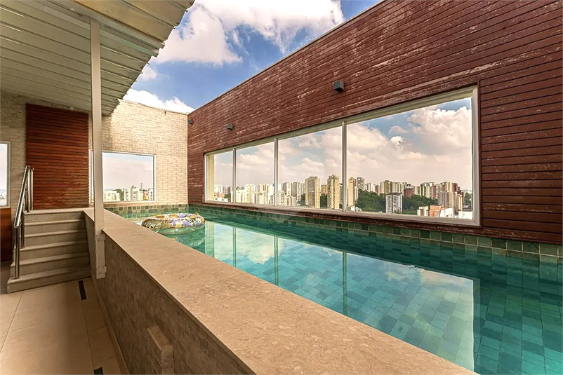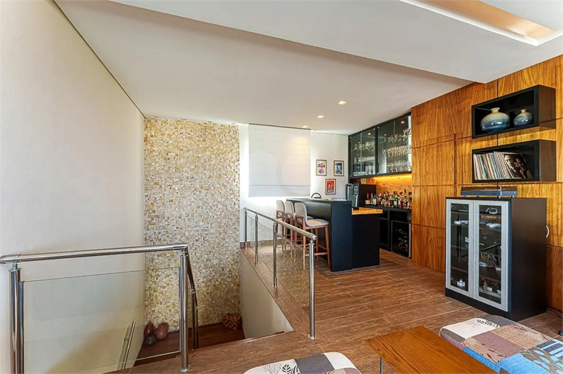 No pavimento superior, um verdadeiro refu´gio de lazer e entretenimento te aguarda! A entrada independente leva a um elegante home theater, seguido por um bar, um lavabo e uma sofisticada sala de jantar, também com vista livre e linda para a cidade. O espac¸o gourmet, totalmente equipado com churrasqueira, forno de pizza e chopeira, se integra perfeitamente a` a´rea externa, onde uma piscina aquecida – com aquecimento solar e a ga´s – garante diversa~o em qualquer estac¸a~o do ano. Para completar, o teto retra´til permite um aproveitamento ainda maior desse ambiente exclusivo
