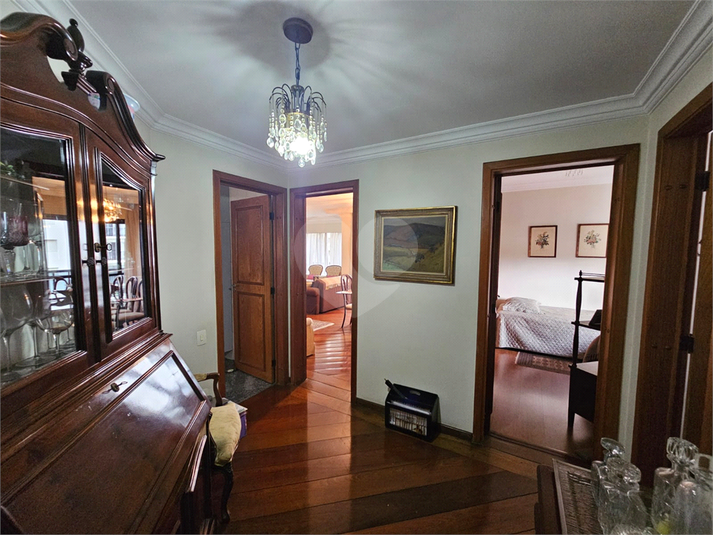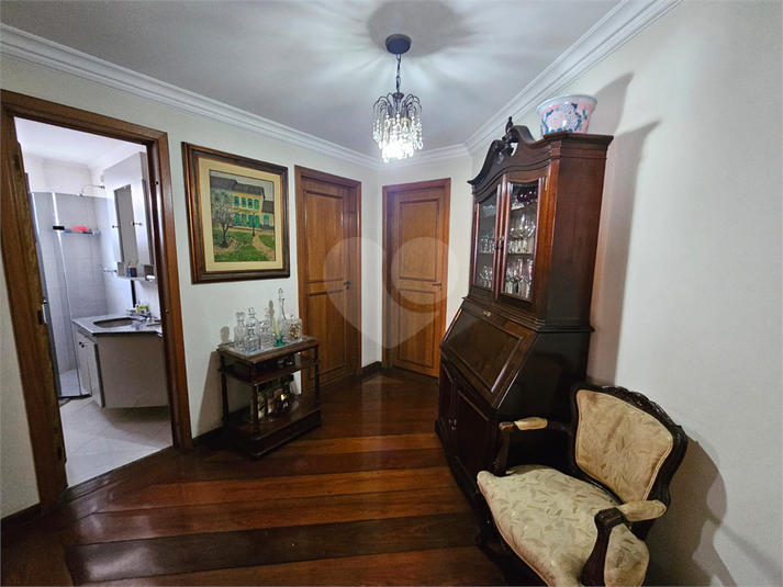 São 3 dormitórios com armários planejados, sendo 1 suíte com hidromassagem, banheiro social e lavabo. Sala ampla com lareira e terraço, cozinha planejada com copa, área de serviço com armários e banheiro de empregada.