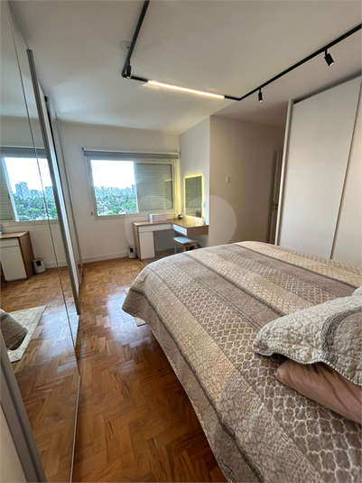 Paredes com revestimentos, iluminação direcionada com spots, ar condicionado. Porcelanado no ambiente ampliado e madeira na parte íntima.