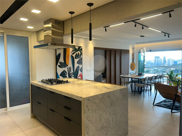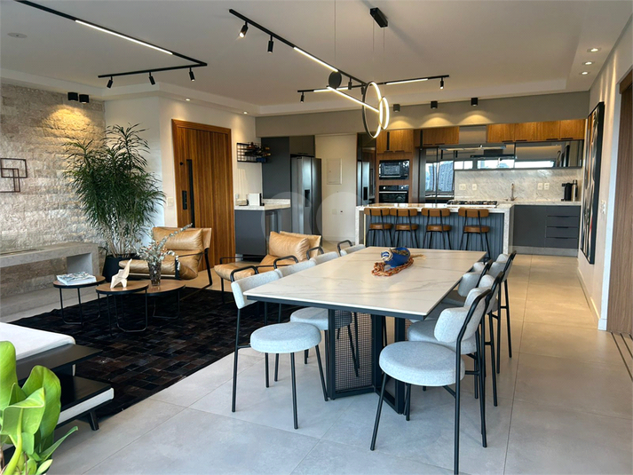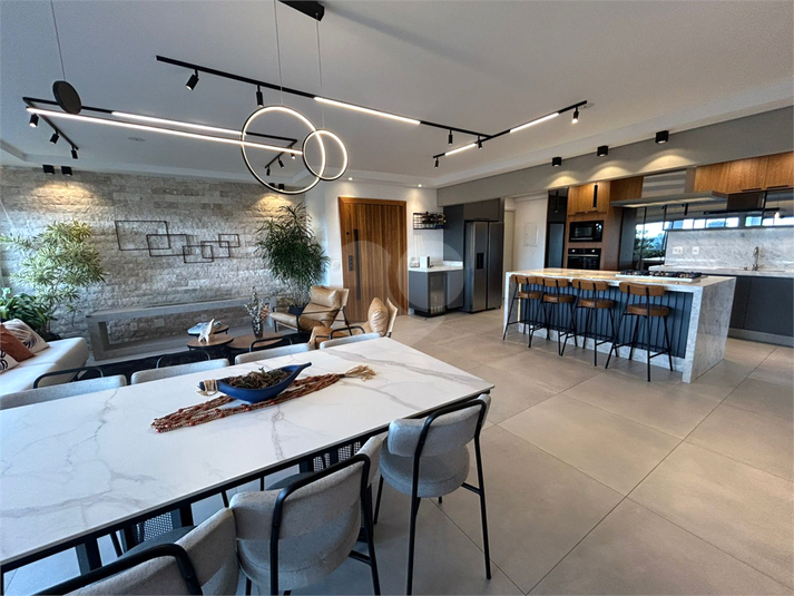 Moderno e bem mobiliado, configurado no concetio aberto aonde aos ambientes se conectam num só espaço… interação total entre sala de estar, TV , jantar, terraço e cozinha. Perfeito para receber bem os amigos e a família !